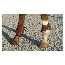 Met neopreen gevoerde strijklappen afgewerkt met lederen biesrand en messing gespen.