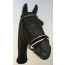 Luxe hoofdstel met zacht onderlegd kopstuk met extra brede neusriem. Neusriem is zwart/wit onderlegd HB Hoofdstel is versiert met frontriem Black-rogan met ss fournituren.