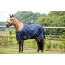 Luxe outdoor deken van 840 denier met fleece voering. Dit model deken is speciaal ontwikkeld voor de paarden met bredere borst en barokke paarden waaronder de friezen. Aan de voorzijde is deze deken voorzien van een speciale voorsluiting, dubbele sluiting en extra klittenband, extra geplooid in de hals, kruissingels, bilkoorden en grote staartflap. 1402