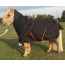 Outdoor deken zwart/red gemaakt van 600D nylon en 300 grams gevoerd. Deze deken is waterdicht en heeft een afneembare hals, loopsplit, dubbele snelsluiting voor met klittenband op de borst, nylon voering voor tegen schuren, kruissingels, elastische bilkoorden en staartflap. HB 1423