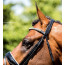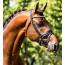 Dit hoofdstel is uitgevoerd in special soft leder, met ss fournituren met blinde sluitingen aan bakstukken en teugels. Het kopstuk is zacht gevoerd en terug gesneden. Met anatomische 4 cm brede lak neusriem en de frontriem is voorzien met Flower Power stone frontriem. 390