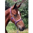 Luxe halster zacht onderlegd op kopstuk en neusband. Op meerdere plaatsen verstelbaar. Versiert op meerdere plaatsen met leuke en vrolijke fantasie bies. 747A