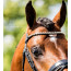 Dit hoofdstel is uitgevoerd in special soft leder, met ss fournituren met blinde sluitingen aan bakstukken en teugels. Het kopstuk is zacht gevoerd en terug gesneden. Met anatomische 4 cm brede neusriem en de frontriem is voorzien met White Brilliant stone. 388