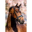 Luxe Showtime hoofdstel met anatomisch kopstuk en anatomische lak neusriem. Met extra brede padding om het paard een nog betere draagcomfort te bieden. Frontriem is versiert met Trydac Swarovski siersteentjes. 352