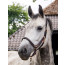 Het halster is versiert met rosegold steentjes aan beide zijde neusriem